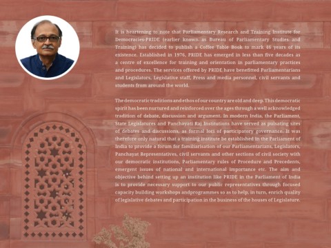 objective behind setting up an institution like PRIDE in the Parliament of India